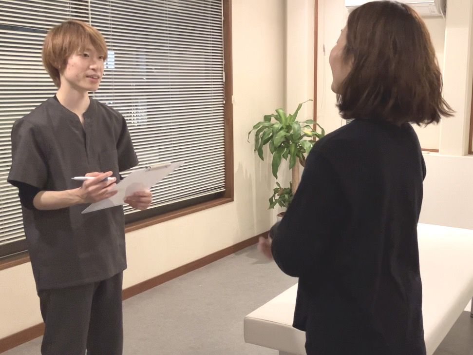 「どういった症状か、どんな時、どんな動きでその症状や痛みが現れるか、その症状はいつからか、思い当たるところはあるか、過去や現在で大きな怪我、病気などはあるか?」などを聞いていきます。